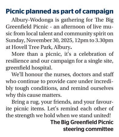 Advocating for a fit for purpose, future-proofed hospital, to service the people of Albury-Wodonga and surrounds.